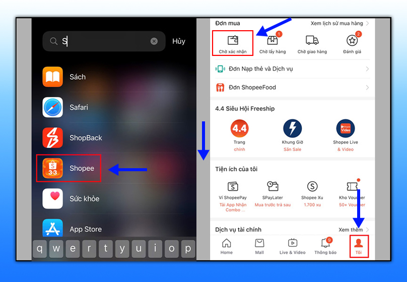 • Vào mục TôiChờ lấy hàng.